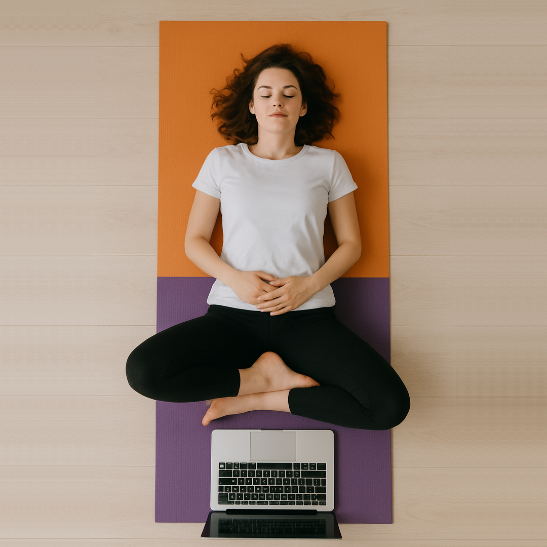 Do każdej asany – rysunek + jasne wskazówki + prowadzenie głosem.